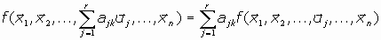 Dicha forma será n-lineal si es lineal con respecto a cada uno de sus argumentos, esto es, la variación de uno de sus argumentos implica que la forma f varíe de forma lineal:Si es