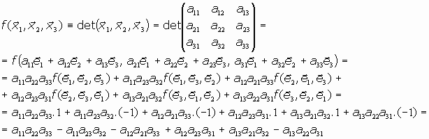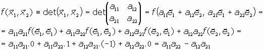 de V, o determinante de orden n, a una forma multilineal alternada de Vn en R, con la condición de hacer corresponder la unidad del cuerpo R a dicha base, esto es: