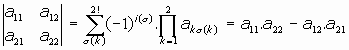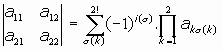 (donde es el índice de la permutación de los segundos subíndices, es decir, el número de inversiones que presenta dicha permutación)