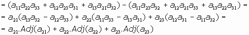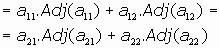 Adj aij = (-1)i+j.a ij El determinante de un conjunto de vectores dispuestos en forma de matriz cuadrada puede obtenerse multiplicando cada uno de los términos de una linea cualquiera (ya sea fila o columna) por sus correspondientes adjuntos.