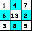 Por último, aquí está la increíble solución de EULER, en la que filas y columnas suman 260 (¡cuadrado mágico!).
