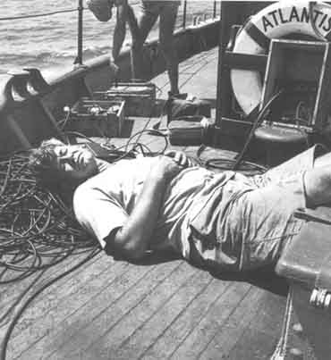 El joven Maurice Ewing en la cubierta de uno de los buques que lo llevaría al conocimiento de grandes descubrimientos.