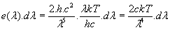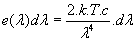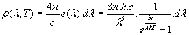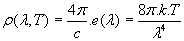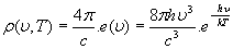 (h: constante de Planck, c: velocidad de la luz en el vacío, k: constante de Boltzman). La expresión de la densidad de energía electromagnética de equilibrio se podría expresar por: