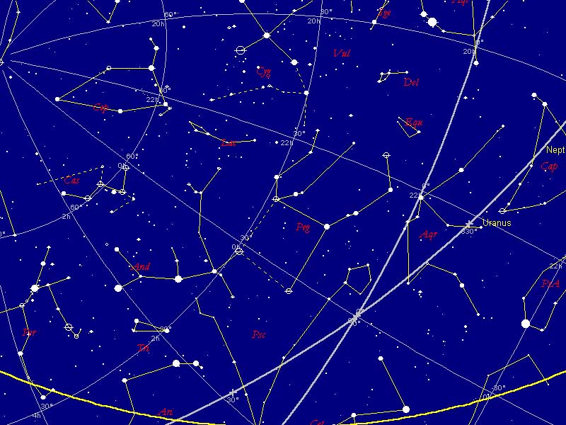 Aparición de nuevas constelaciones:Desde las primeras horas de la noche ya están sobre el horizonte las constelaciones de Pegaso, Andrómeda, Casiopea, el pentágono de Virgo, etc.., para ir apareciendo a continuación, a lo largo de la noche, las constelaciones de Perseo, con su doble cúmulo, y la constelación de Auriga.
