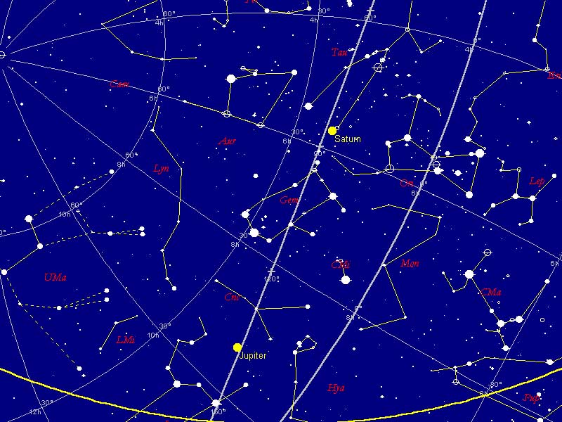 Nombre del par Coordenadas ecuatoriales Separacion Angulo de posición Magnitudes STF 0900 06238+0436 12.68" 27º 4.50-6.70 STF 1112 07321-0852 23.66" 112º 5.90-8.80 STT 0082 07043+0129 90.89" 318º 6.60-7.40 El Planeta Júpiter: