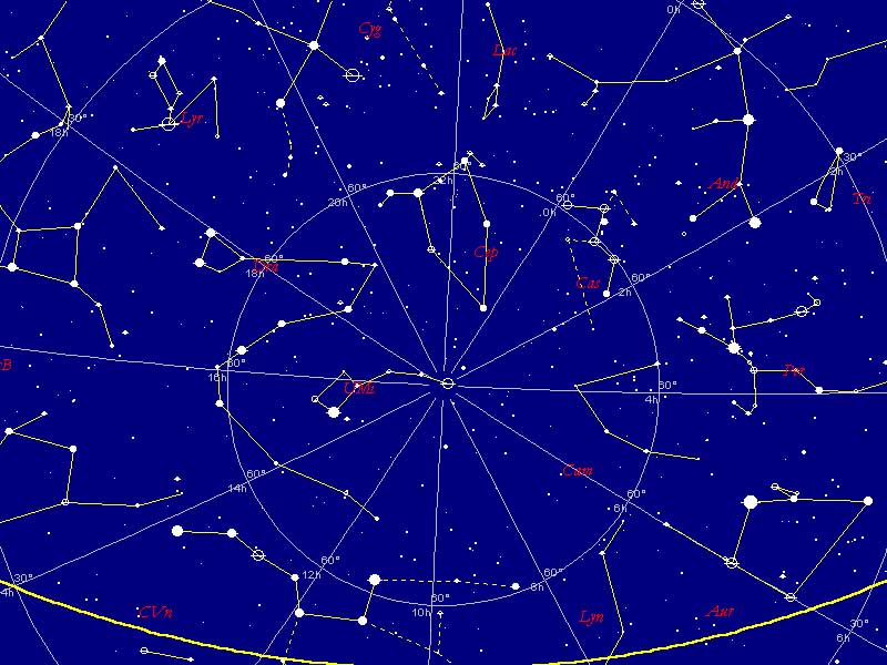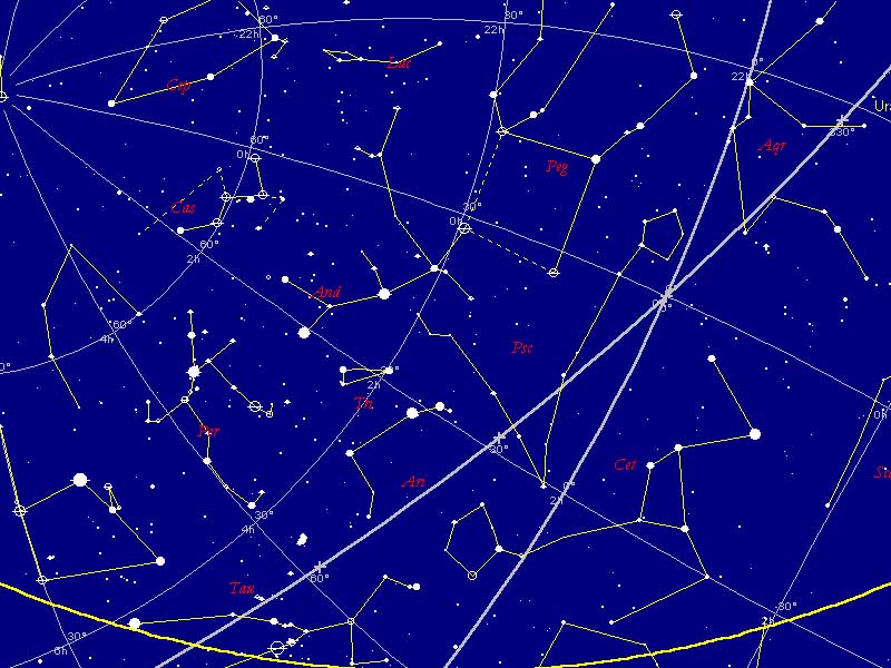SOBRE LAS IMÁGENES: Las dos últimas imágenes que se muestran proceden del interesante y utilísimo programa planisferio para windows, el SkyMap, cuyo autor es Chris Marriott's, y que se puede encontrar en http://www.skymap.com